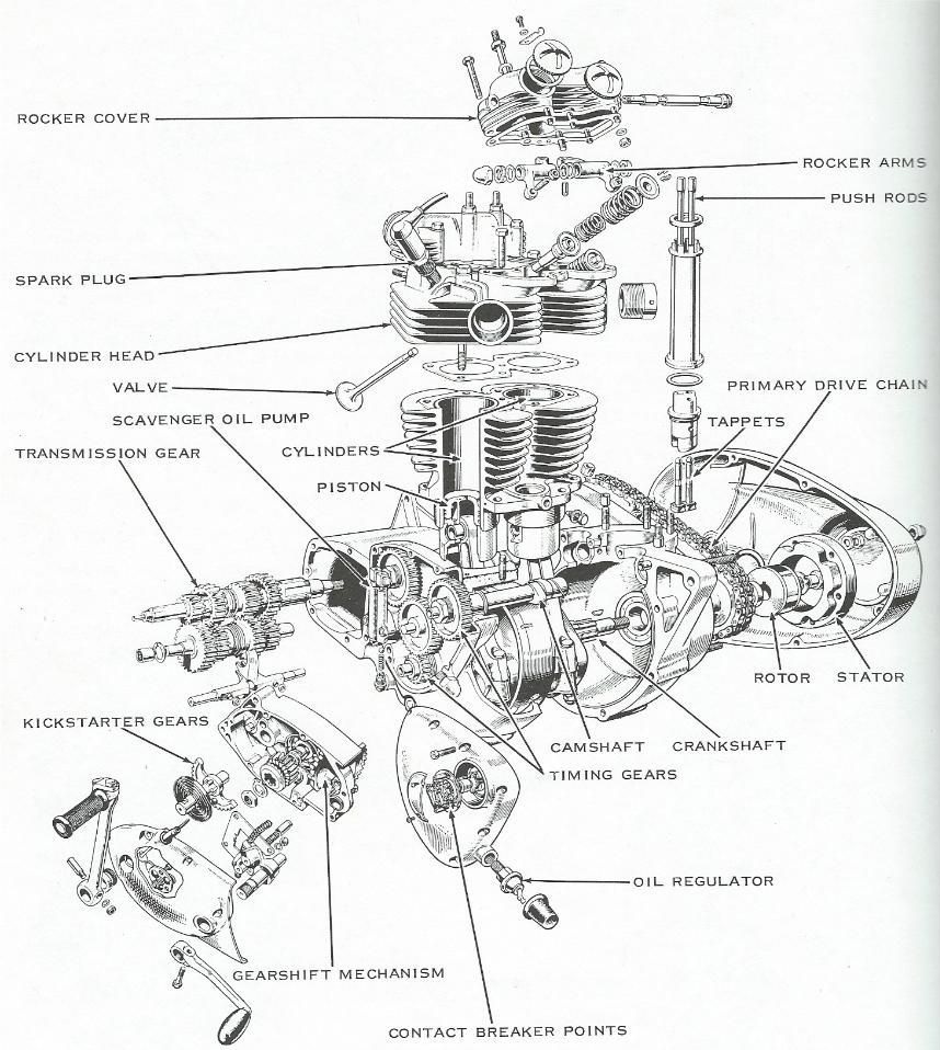 An engine is the very core of any motorcycle just like heart for Human. The motorcycle and human being fundamentally need heat to survive which is Thermodynamics (Simply put, study of heat). Let us consider this analogy. There are four processes for an engine to run and we call it a cycle. Just like we take food to run our system, an engine needs air and fuel which will be taken in and we call it intake. Now this intake of the mixture mentioned latter is been compressed just like our digestive system processes the food we take and we call it compression. Now with the help of the energy developed with the food, thanks to our digestive system, we accumulate energy for our life until we need next refill. The same way, the compressed fuel is been used to generate the motion of the piston inside an engine cylinder which enables the motorcycle to move and we call it power stroke. Just like human waste, the engine expels the burnt particles which is called exhaust. That makes a complete cycle. The place where this magical cycle happens is said to be in a Thermodynamic system, where engine and human body is boundary and everything external to it is surrounding.